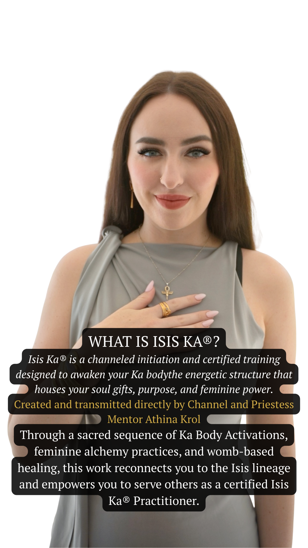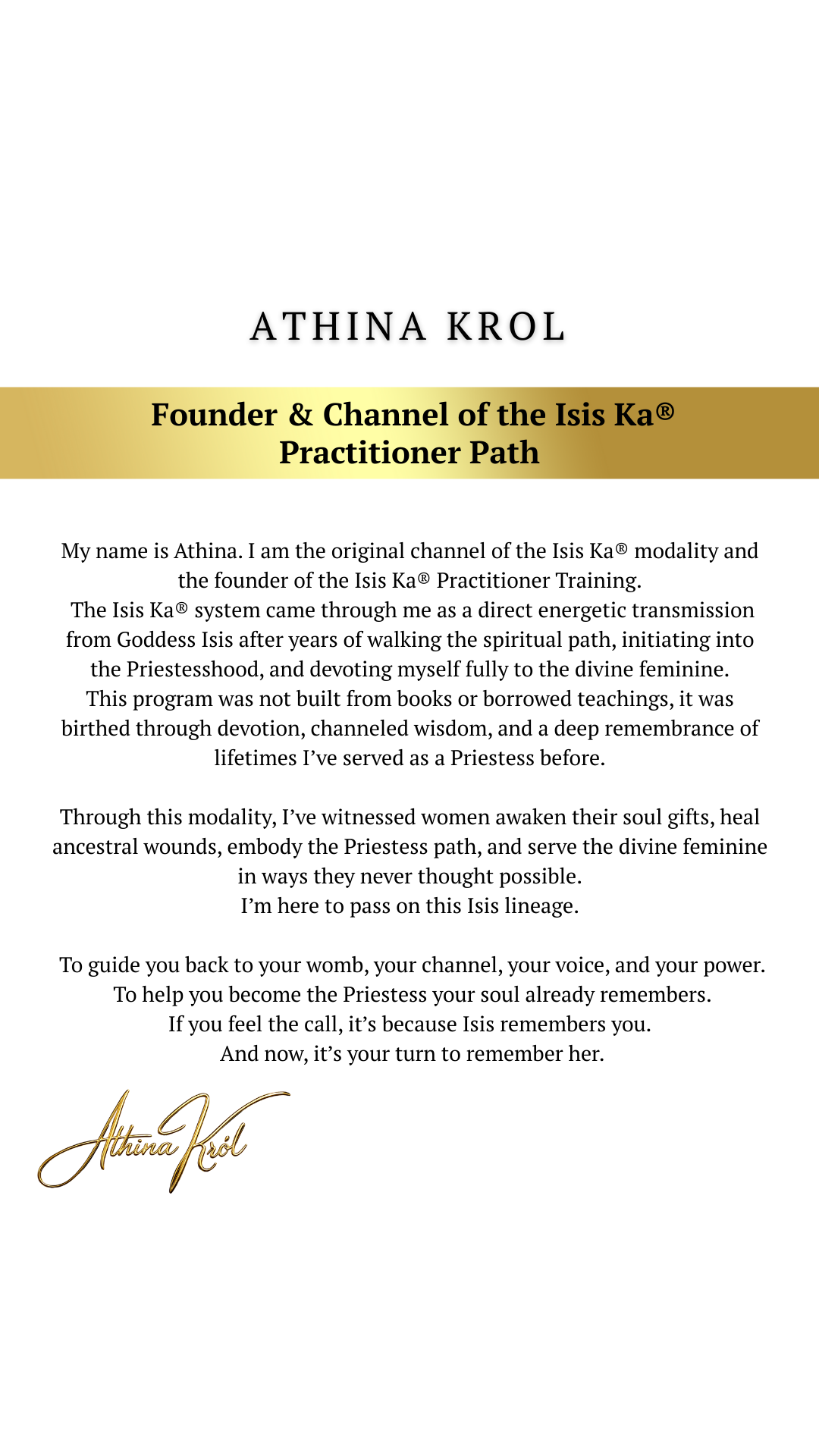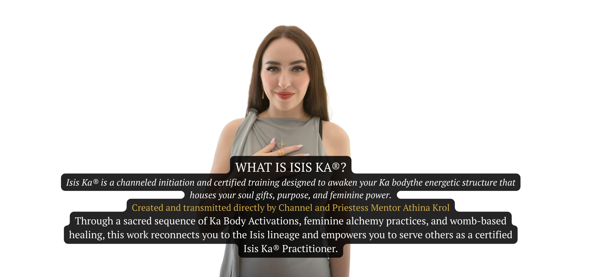 Receive the Isis Ka® frequency, be initiated into the living lineage, and serve as a certified practitioner of Ka Body Activations and Sacred Feminine Alchemy.